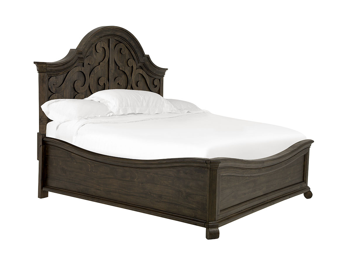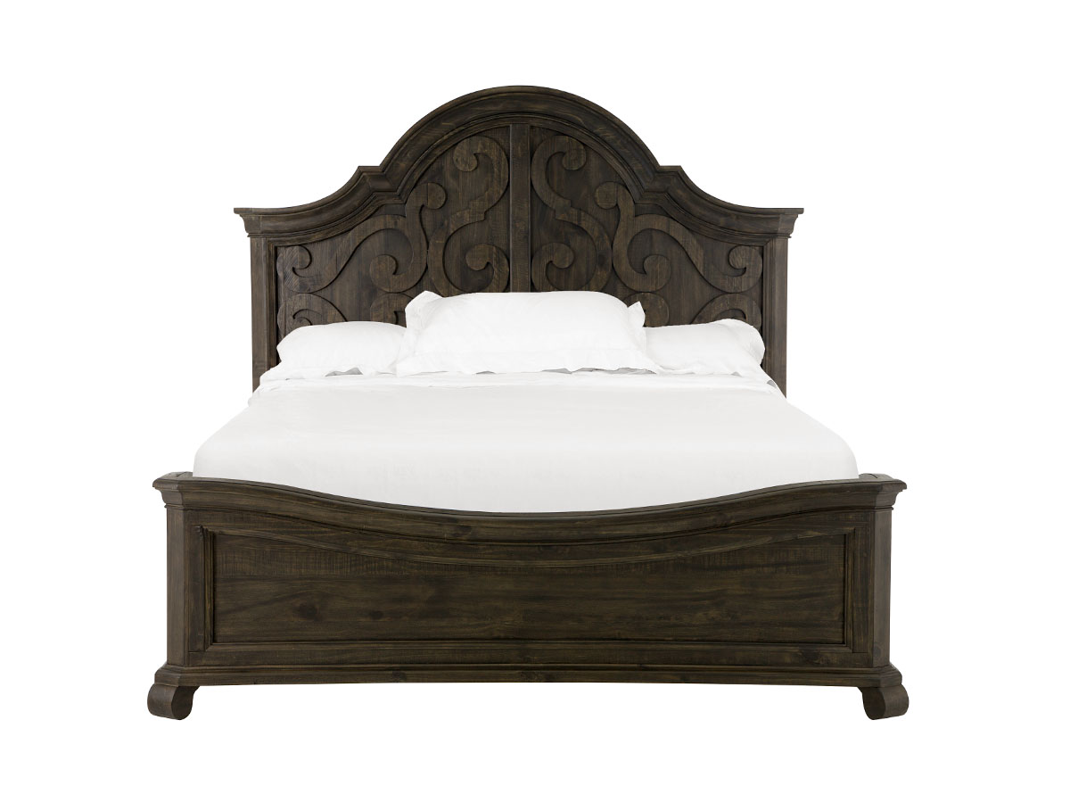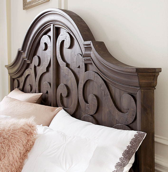בחדר זה אלמנט ראש מיטה מרשים וענק במיוחד, הכולל גילופי ופיתוחי עץ.