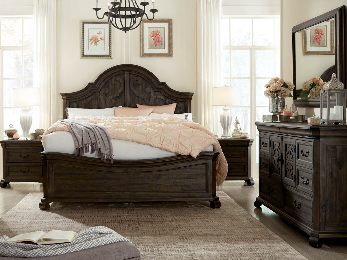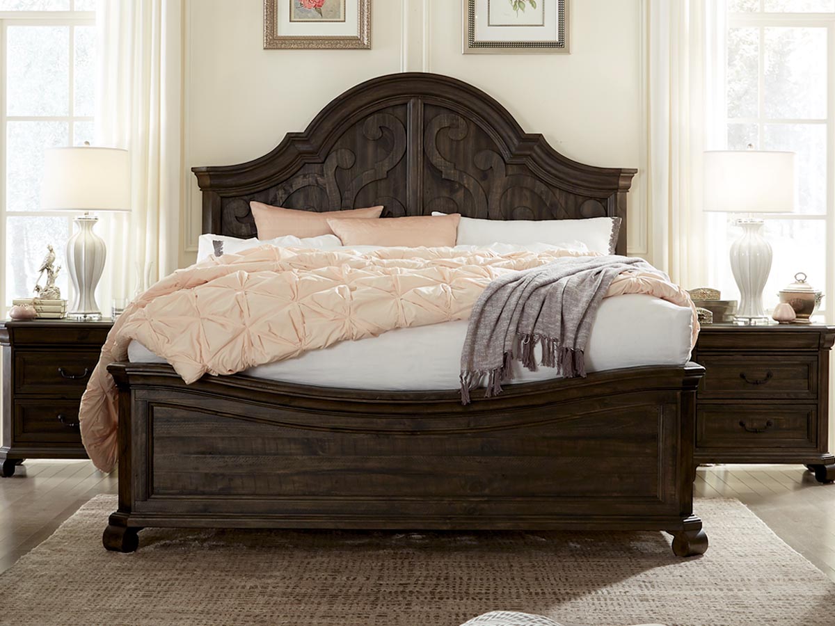 חדר שינה מפואר, בעיצוב כפרי, בגוון חום.