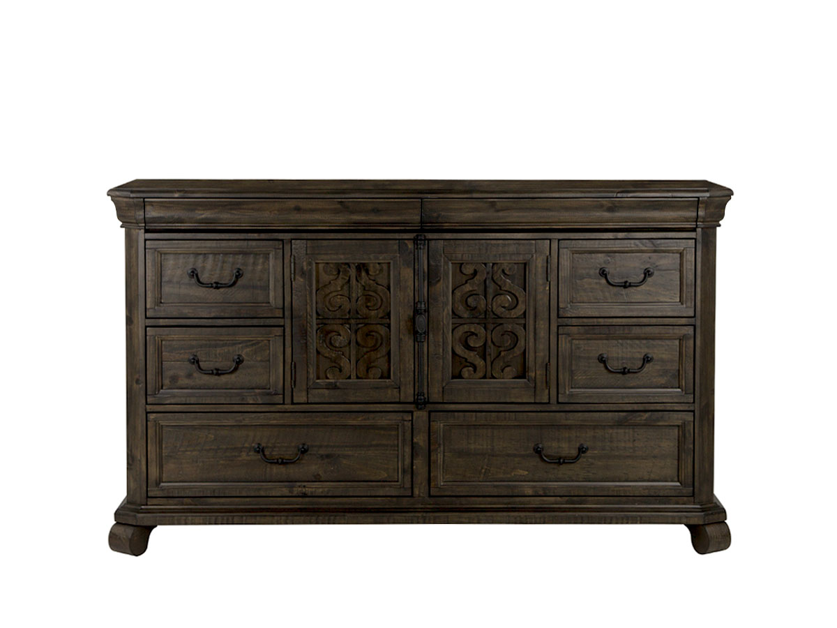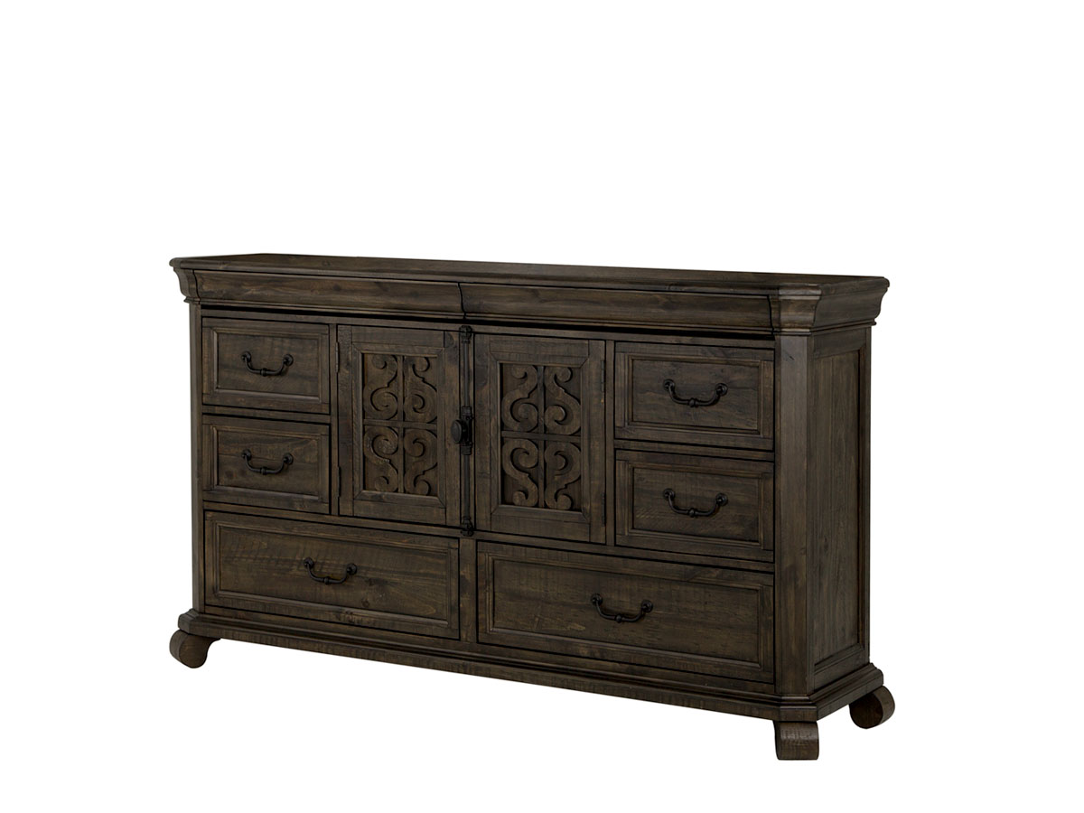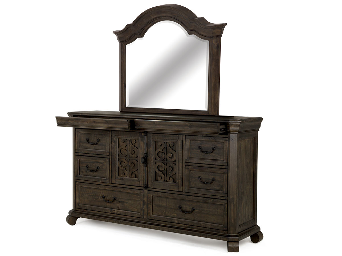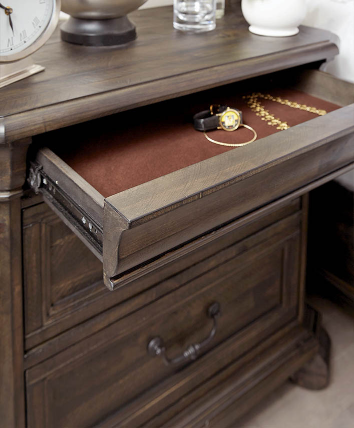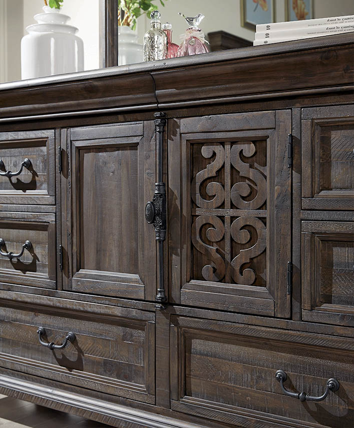 גילופי ופיתוחי עץ מרשימים בשידות הצד ובשידת המראה גם כן.