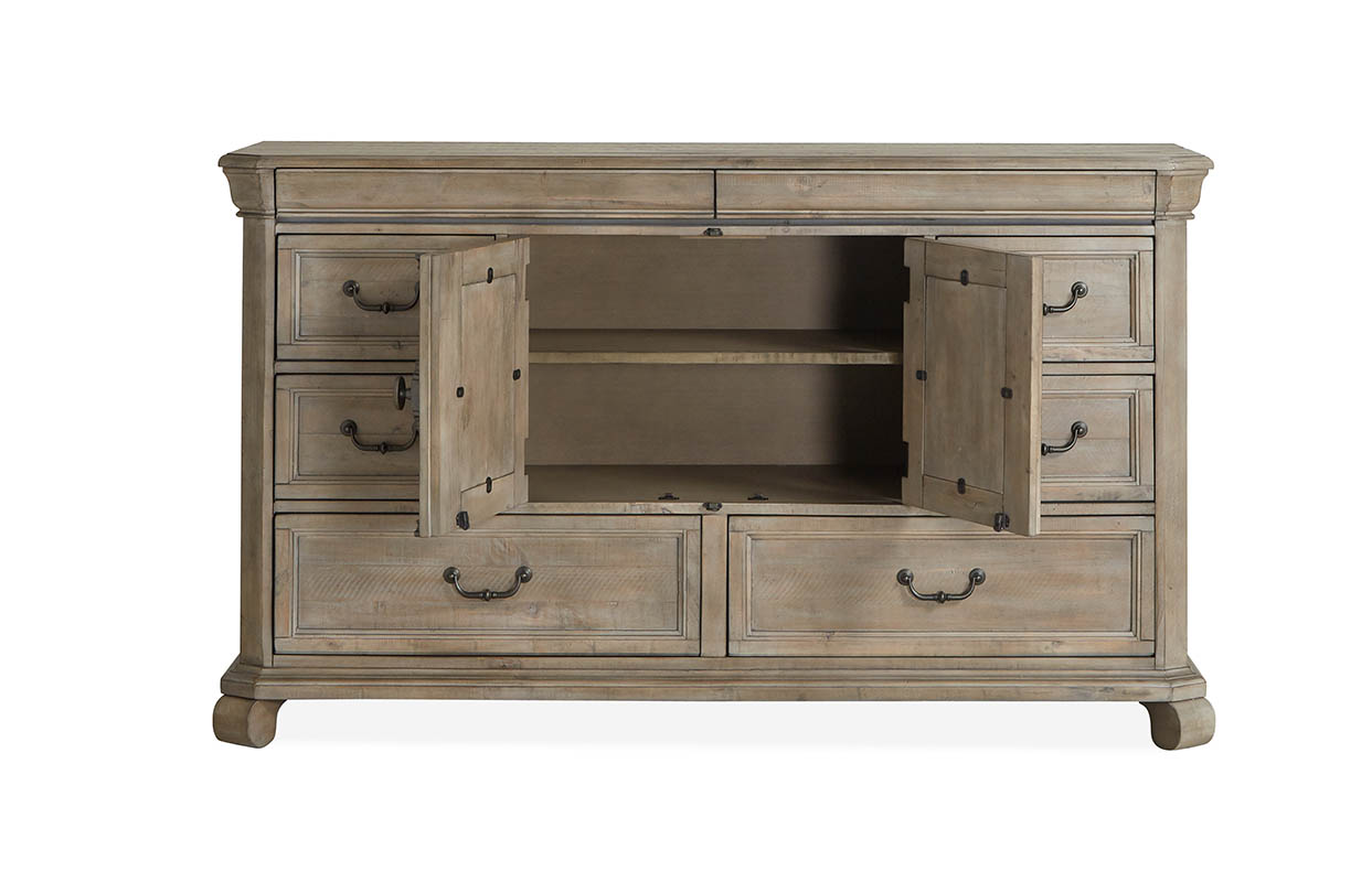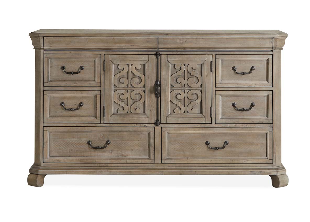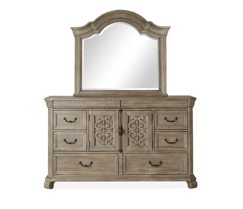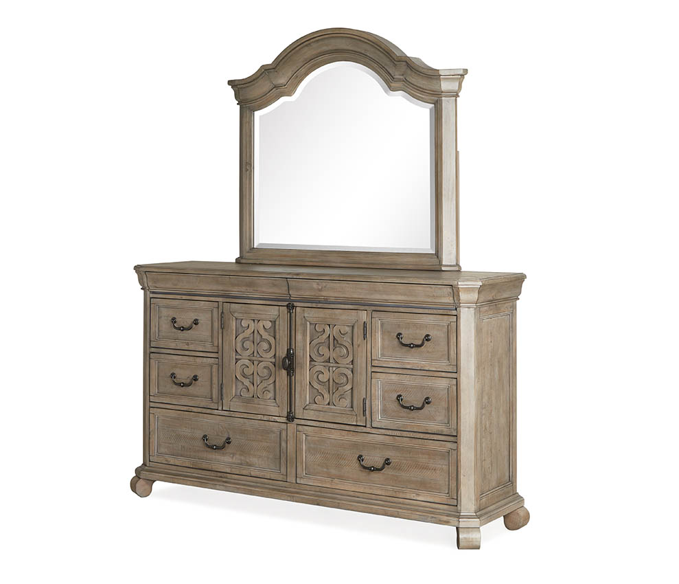 גילופי ופיתוחי עץ מרשימים בשידות הצד ובשידת המראה גם כן.
