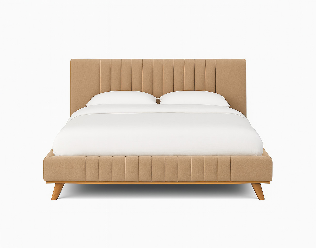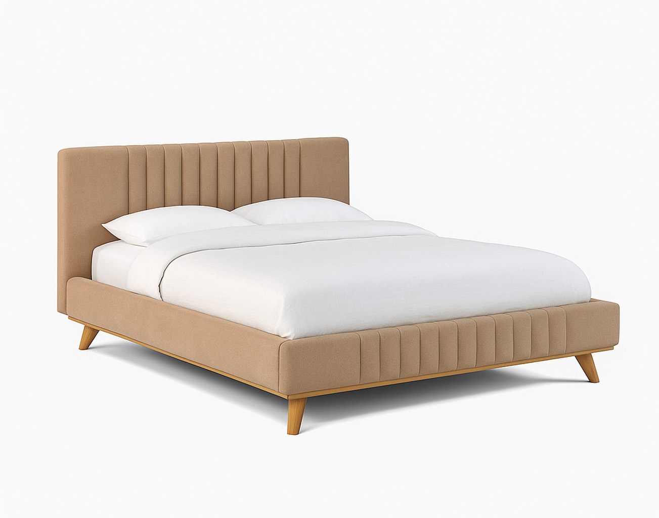 מיטה מפוארת בעיצוב מודרני, משולבת עץ בוק בגוון טבעי.