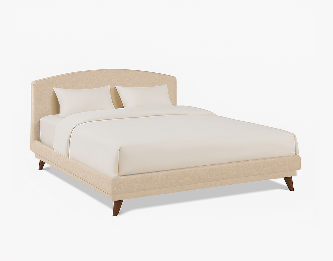 מיטה מפוארת בעיצוב מודרני, בגוון טבעי.
